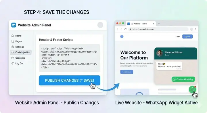 Copy the WhatsApp widget installation code from your WApp Chat dashboard.