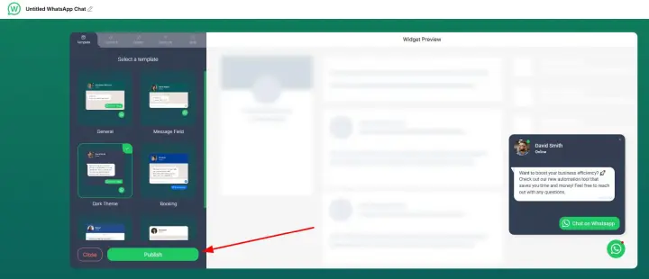 Create a widget according to your brand — choose colors, location, and messaging style using the built-in widget designer.