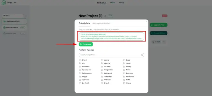 Start by setting up a new project in the control panel of the Wapp chat widget.