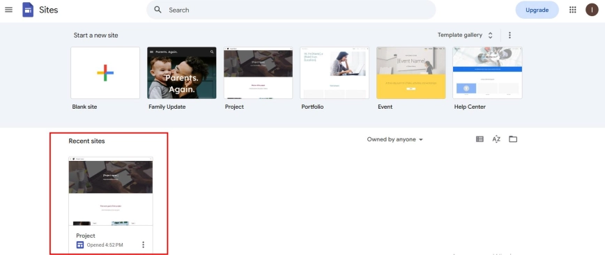 Log in to your Google account and open Google Sites. Select the website you want to work on.
